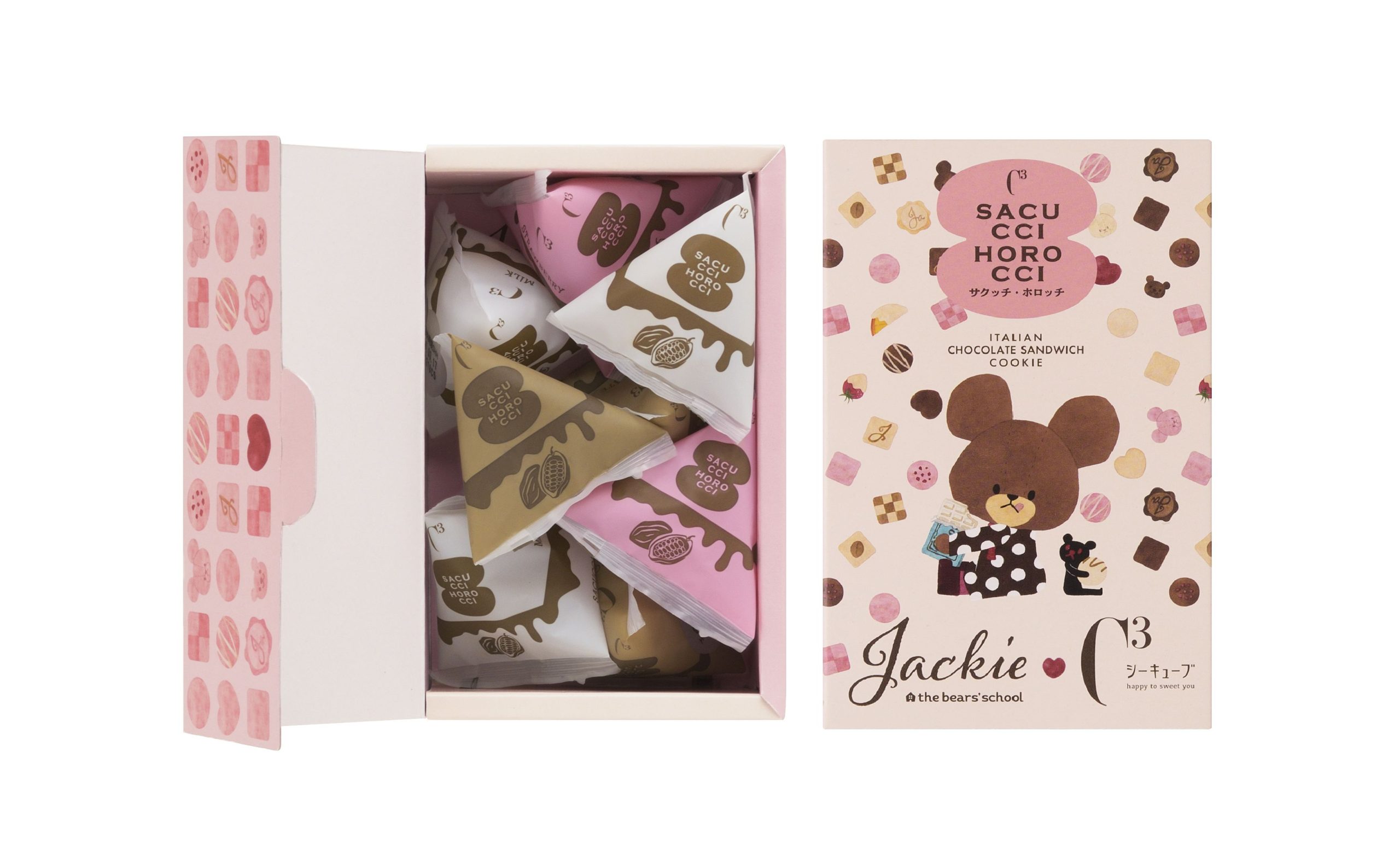 「ジャッキーズチョコレート」のアートよりピンクとホワイトを基調としたサクッチのかわいらしいイメージに合わせたデザインパッケージ。