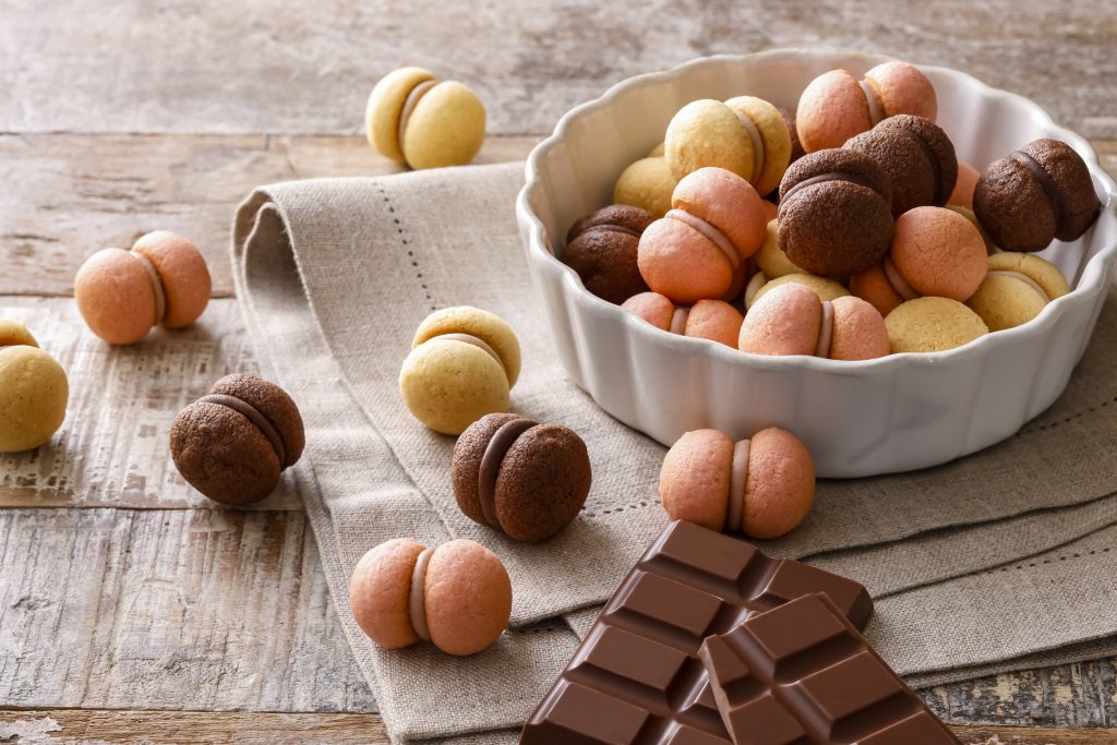 ハッピーを贈る一口クッキー。日本人の好きなほろほろ食感のクッキーに、チョコをサンドしました。このお菓⼦のヒントはイタリア・ピエモンテ地⽅の伝統菓⼦「バーチ・ディ・ダーマ」。“貴婦人のキス”というなんとも幸せな意味もあります。毎日でも食べたくなってしまう、ちょっとした贈りものにもぴったりのコロンと可愛いクッキーです。
