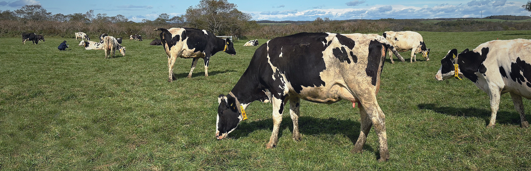 ⼈⼝約7,000⼈に対して飼育されている乳⽜は2万頭を超え、夏でも気温は25度を越える⽇はほとんどない冷涼な気候で⼀帯には広⼤な牧草地が広がります。